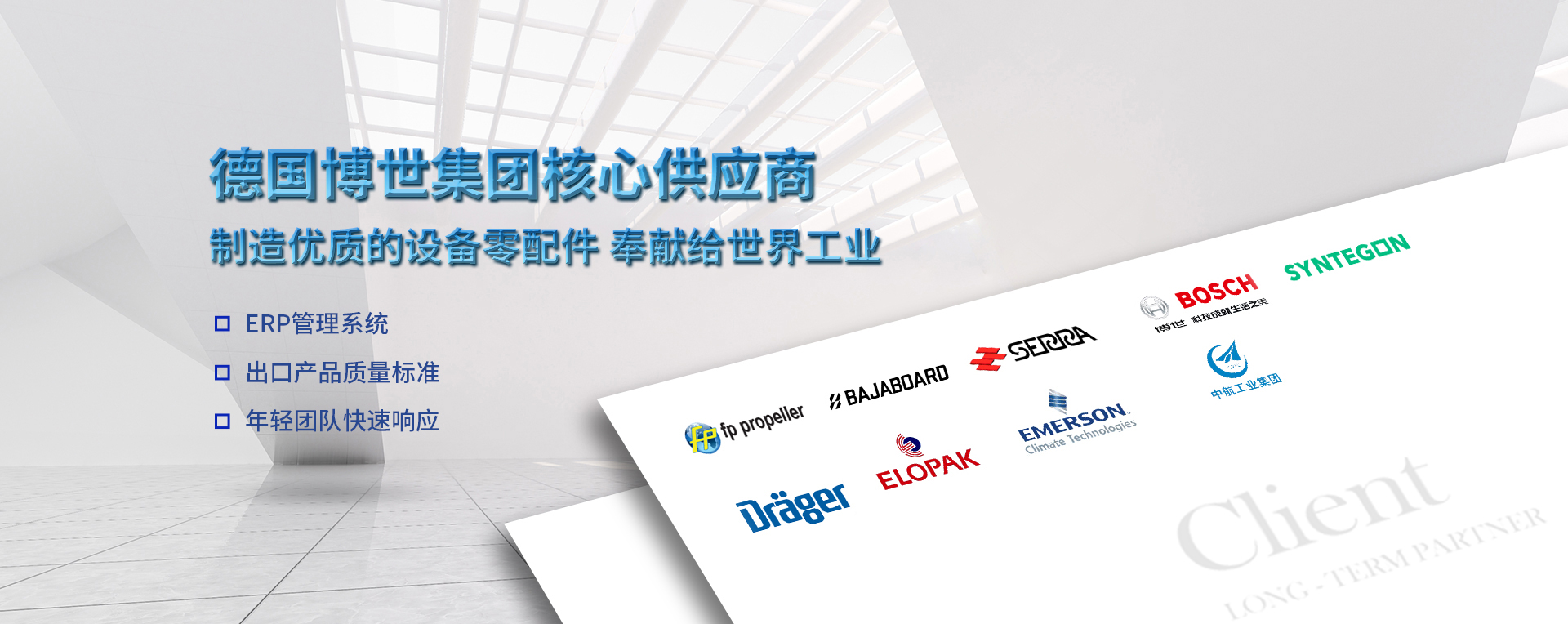 產(chǎn)品主要包括醫(yī)療器械精密配件,包裝機械配件,汽車精密零部件,民用航空精密配件,高端電動越野滑板車等,公司先后獲得 ISO9001:2008 質(zhì)量體系認(rèn)證以及進出口權(quán),具備嚴(yán)格的質(zhì)量管理體系和完善的售后服務(wù)體系。服務(wù)涉及民用航空、能源、通訊、電子、交通、環(huán)保等重要產(chǎn)業(yè)。